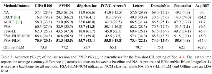 In Class-Incremental Learning (CIL) an image classification system is exposed to new classes in each learning session and must be updated incrementally. Methods approaching this problem have updated both the classification head and the feature extractor body at each session of CIL. In this work, we develop a baseline method, First Session Adaptation (FSA), that sheds light on the efficacy of existing CIL approaches, and allows us to assess the relative performance contributions from head and body adaption. FSA adapts a pre-trained neural network body only on the first learning session and fixes it thereafter; a head based on linear discriminant analysis (LDA), is then placed on top of the adapted body, allowing exact updates through CIL. FSA is replay-free i.e. it does not memorize examples from previous sessions of continual learning. To empirically motivate FSA, we first consider a diverse selection of 22 imageclassification datasets, evaluating different heads and body adaptation techniques in high/low-shot offline settings. We find that the LDA head performs well and supports CIL outof-the-box. We also find that Featurewise Layer Modulation (FiLM) adapters are highly effective in the few-shot setting, and full-body adaption in the high-shot setting. Second, we empirically investigate various CIL settings including highshot CIL and few-shot CIL, including settings that have previously been used in the literature. We show that FSA significantly improves over the state-of-the-art in 15 of the 16 settings considered. FSA with FiLM adapters is especially performant in the few-shot setting. These results indicate that current approaches to continuous body adaptation are not working as expected. Finally, we propose a measure that can be applied to a set of unlabelled inputs which is predictive of the benefits of body adaptation.