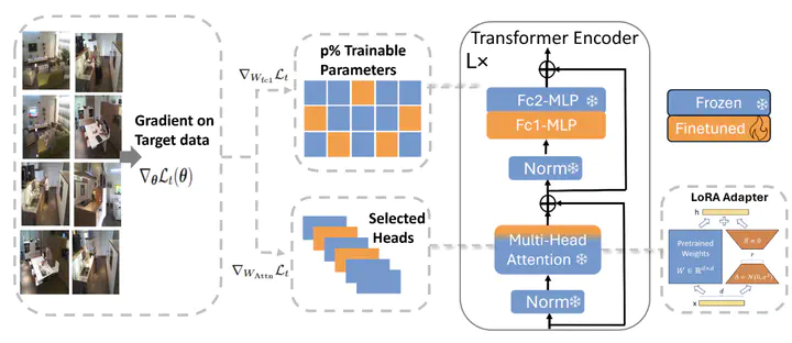 Vision-language models (VLMs) excel at tasks like visual question answering and image captioning, but their reliance on frozen, pretrained image encoders like CLIP often leads to persistent vision errors that degrade downstream performance. Moreover, real-world deployment demands that VLMs continually adapt to new, scarce data in a few-shot setting without forgetting prior knowledge. To meet these challenges, we introduce LoRSU (Low-Rank Adaptation with Structured Updates), a lightweight and robust technique for few-shot continual learning of VLMs’ image encoders. Our approach leverages theoretical insights to identify and update only the most critical parameters, achieving significant resource efficiency. Specifically, we demonstrate that LoRSU reduces computational overhead by over 25x compared to full VLM updates, without sacrificing performance. In experiments on VQA benchmarks under a few-shot continual learning protocol, LoRSU demonstrates superior scalability, efficiency, and accuracy, offering a practical solution for dynamic, resource-constrained vision-language applications.